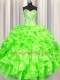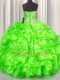 Sleeveless Organza Floor Length Lace Up 15th Birthday Dress in with Beading and Ruffles