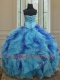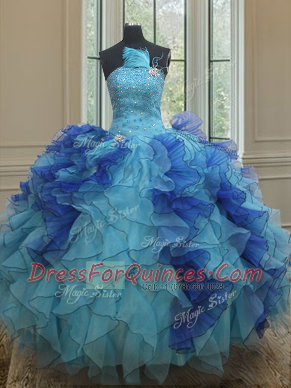 Strapless Sleeveless Lace Up Sweet 16 Dresses Blue Organza
