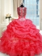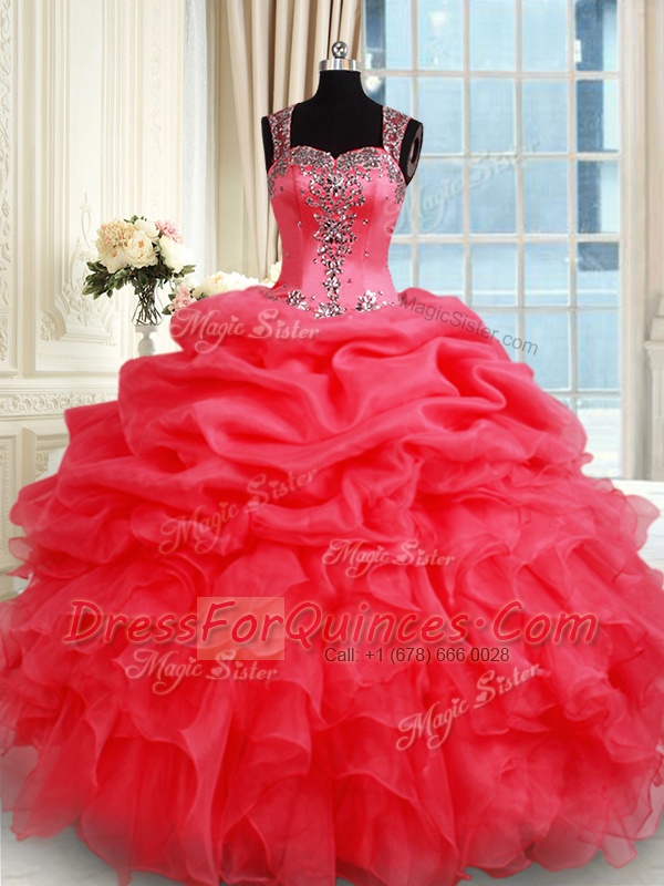 Straps Coral Red Zipper Sweet 16 Quinceanera Dress Beading and Ruffles and Pick Ups Sleeveless Floor Length