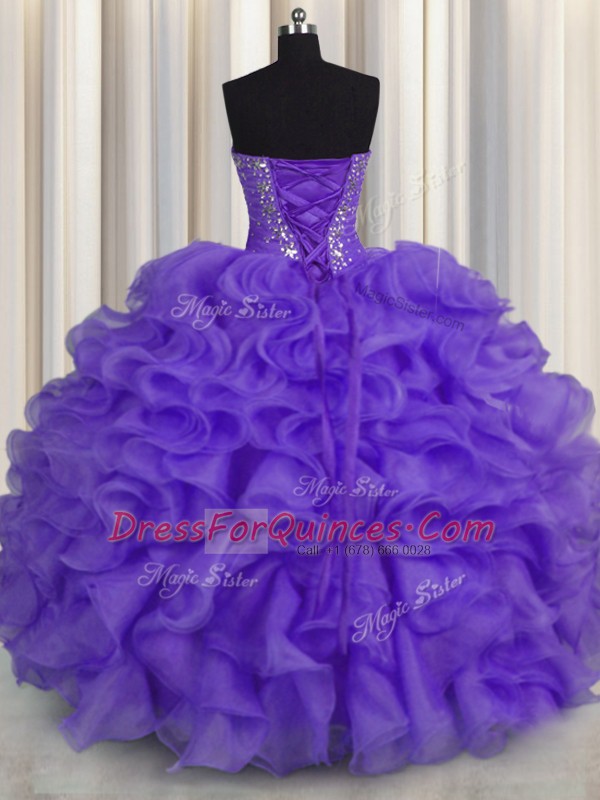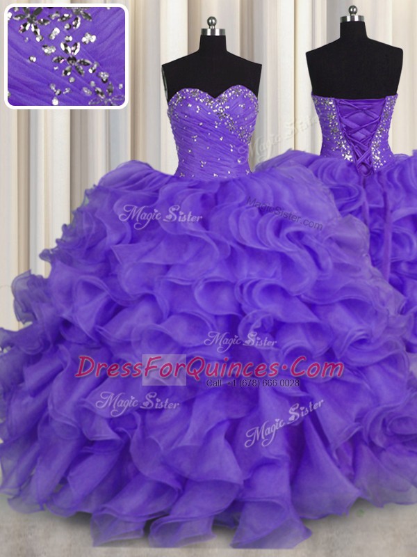 Stunning Lavender Sleeveless Beading and Ruffles Floor Length 15 Quinceanera Dress