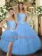 Stylish Baby Blue Sleeveless Floor Length Beading Lace Up Quince Ball Gowns