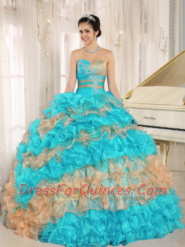 Stylish Multi-color 2013 Quinceanera Dress Ruffles With Appliques Sweetheart In New Styles