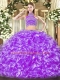 Stylish Tulle Sleeveless Floor Length Sweet 16 Dresses and Beading and Ruffles
