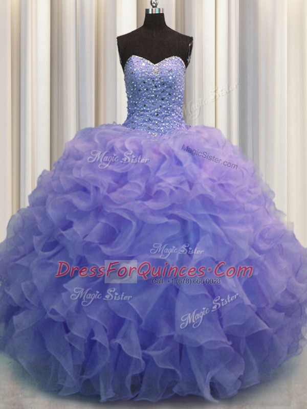 Super Floor Length Blue Sweet 16 Dresses Sweetheart Sleeveless Lace Up
