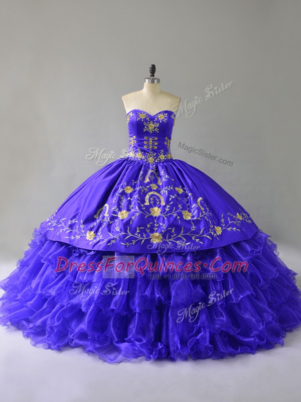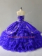 Sweet Blue Sleeveless Floor Length Embroidery and Ruffled Layers Lace Up Quinceanera Gowns