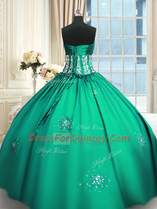 Taffeta Sleeveless Floor Length Quinceanera Dress and Beading and Appliques and Ruching