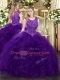 Traditional Purple Scoop Zipper Beading and Ruffles Quinceanera Gown Sleeveless