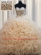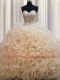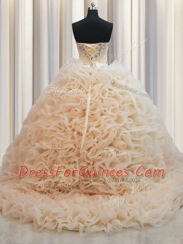 Traditional Sleeveless Brush Train Lace Up Beading Quinceanera Dress
