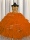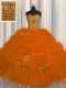 Traditional Visible Boning Rust Red Lace Up Sweetheart Beading and Ruffles and Sequins 15 Quinceanera Dress Tulle Sleeveless