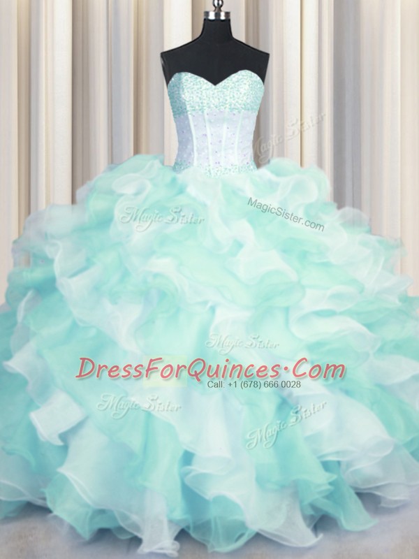 Two Tone Visible Boning Multi-color Quinceanera Dresses Military Ball and Sweet 16 and Quinceanera and For with Beading and Ruffles Sweetheart Sleeveless Lace Up