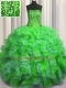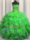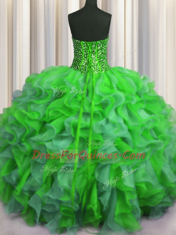 Visible Boning Bling-bling Sleeveless Floor Length Beading and Ruffles Lace Up Sweet 16 Dress with Multi-color