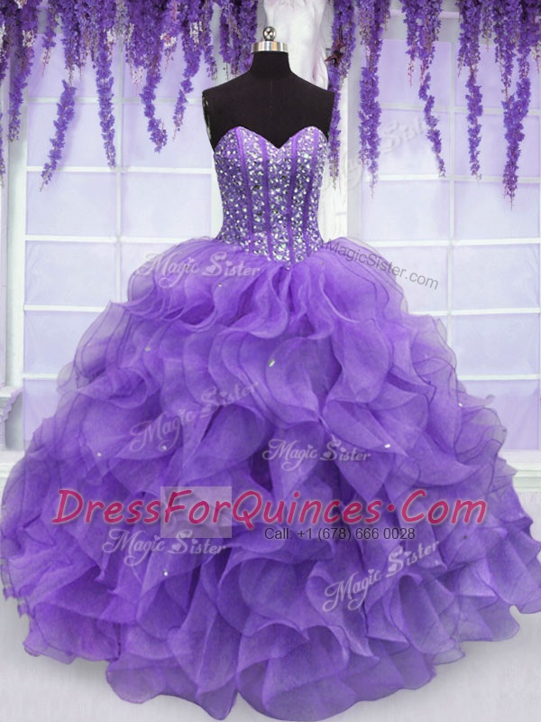 Wonderful Lavender Sleeveless Beading and Ruffles Floor Length Vestidos de Quinceanera