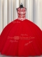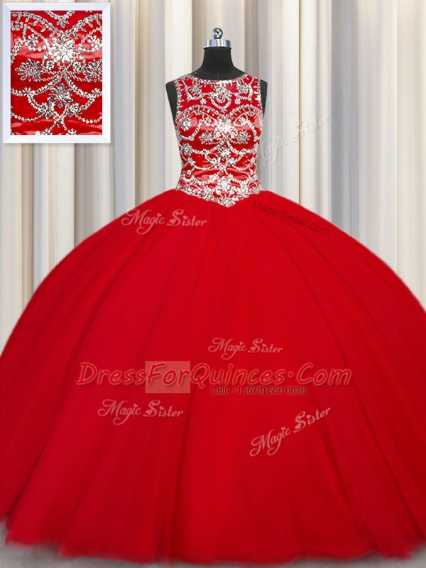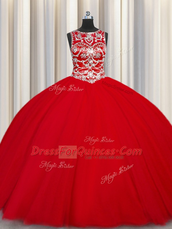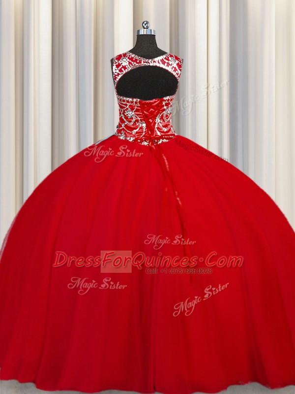 Wonderful Scoop Red Sleeveless Tulle Lace Up Ball Gown Prom Dress for Military Ball and Sweet 16 and Quinceanera