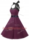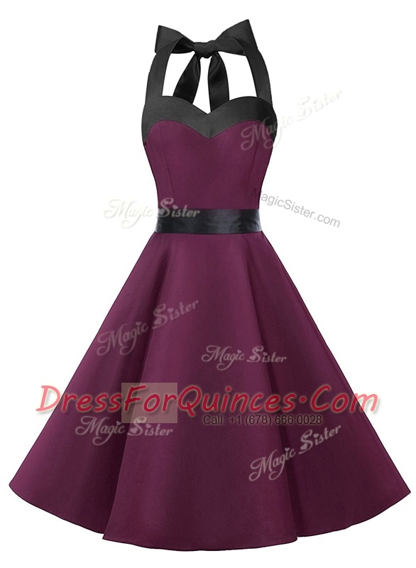 Affordable Dark Purple A-line Halter Top Sleeveless Chiffon Knee Length Zipper Sashes ribbons