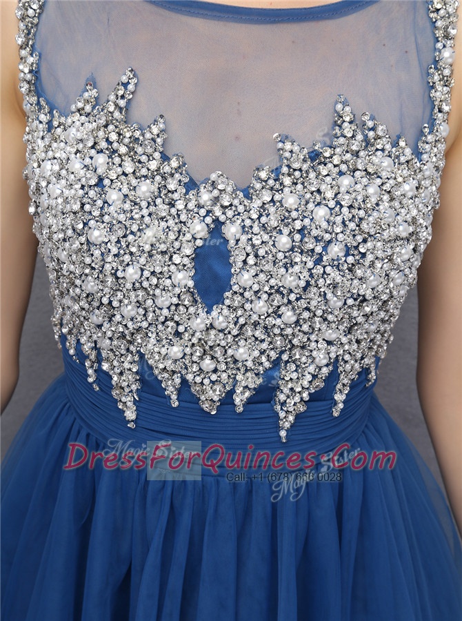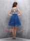 A-line Navy Blue Scoop Tulle Sleeveless Knee Length Zipper