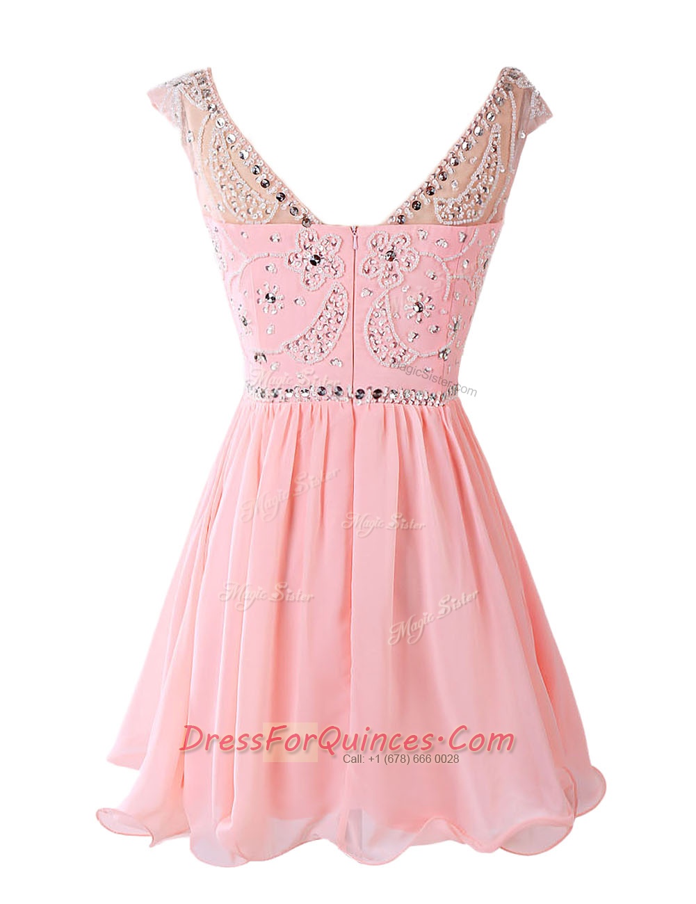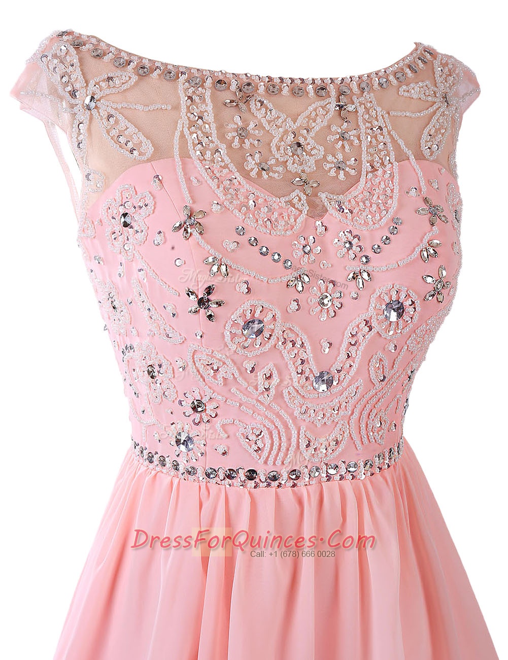 Amazing Pink A-line Chiffon Bateau Sleeveless Sashes ribbons Knee Length Zipper Prom Dresses