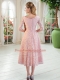 Apple Green Zipper Prom Gown Beading Half Sleeves Tea Length