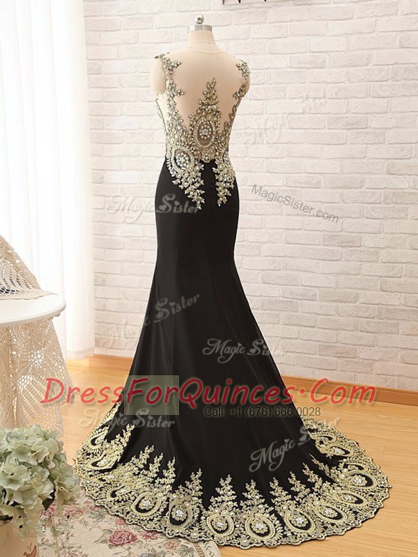 Artistic Scoop With Train Mermaid Long Sleeves Black Prom Dresses Brush Train Lace Up