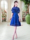 Attractive Cap Sleeves Satin Knee Length Lace Up Prom Gown in Royal Blue with Ruffled Layers