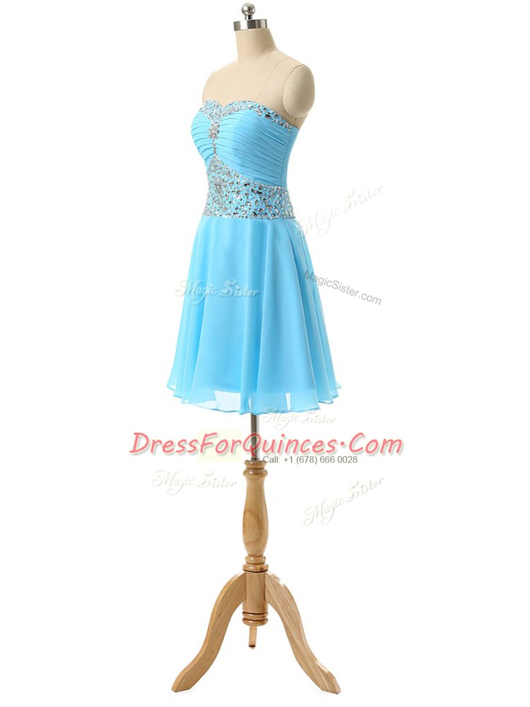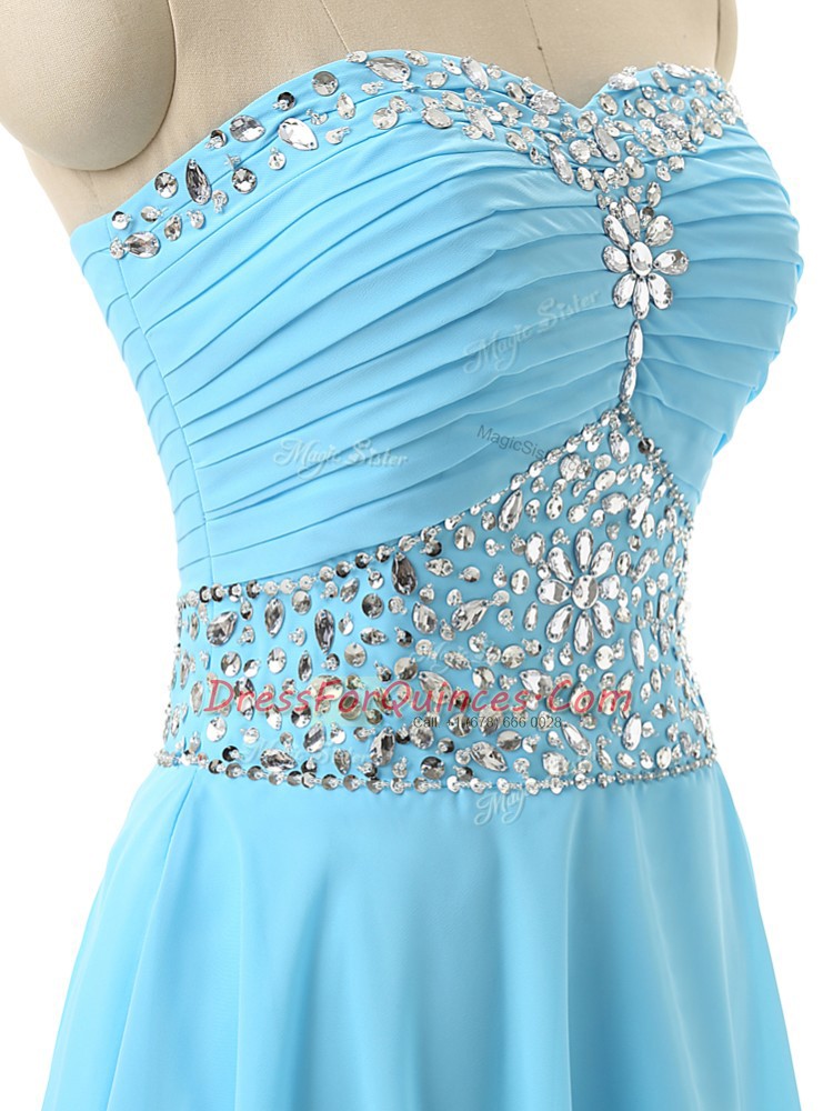 Baby Blue Prom Dress Prom and Party and Beach with Beading Sweetheart Sleeveless Lace Up
