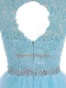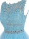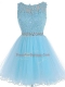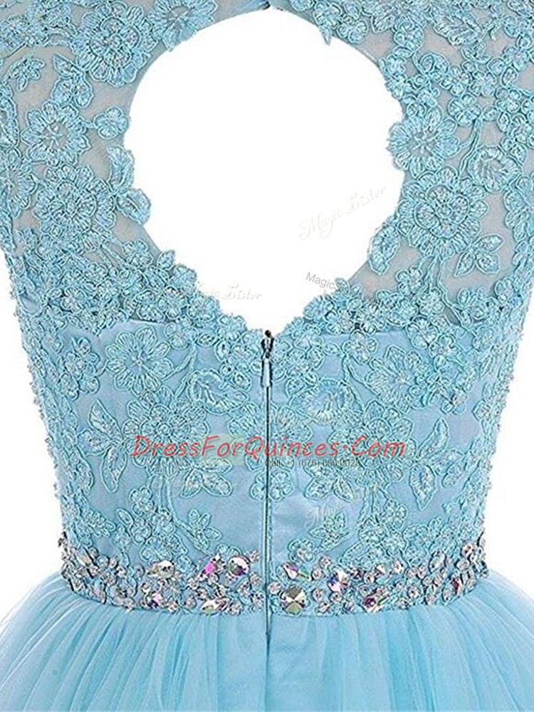 Baby Blue Tulle Zipper Prom Dress Sleeveless Mini Length Beading and Lace and Appliques
