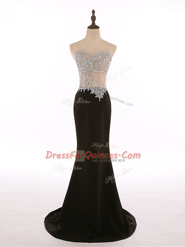 Beading Prom Gown Black Zipper Sleeveless Brush Train