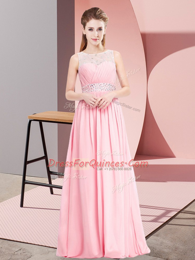 Beauteous Pink Scoop Neckline Beading Evening Dress Sleeveless Lace Up
