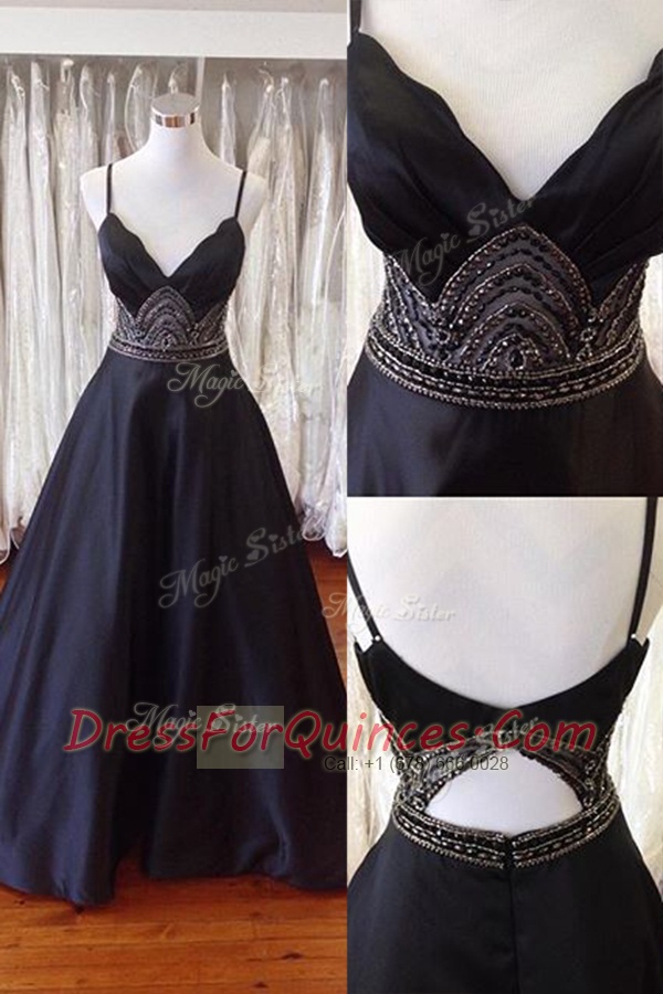 Beauteous Sleeveless With Train Beading Backless Prom Party Dress with Black Sweep Train