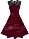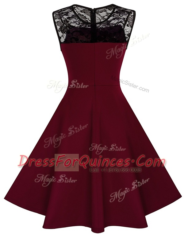 Best Selling Scoop Satin Sleeveless Knee Length Dress for Prom and Lace