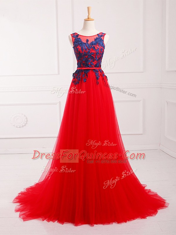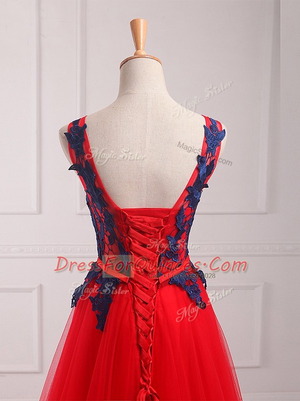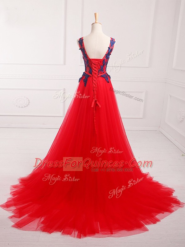 Best Sleeveless Brush Train Lace Up Lace and Appliques Dress for Prom