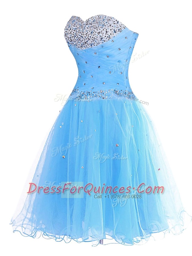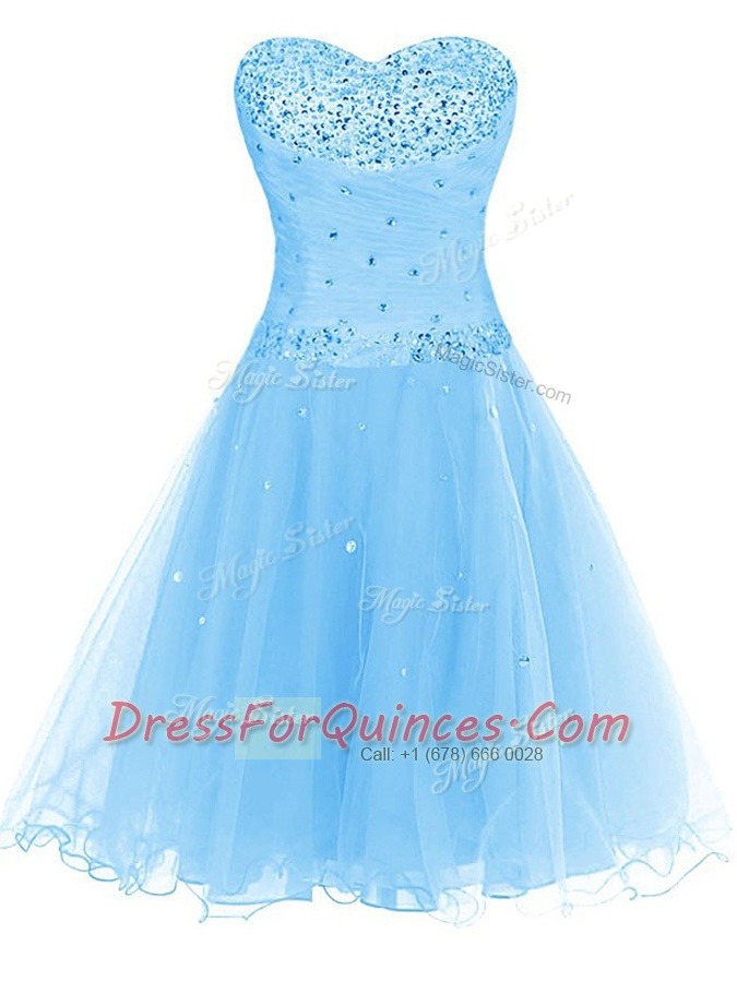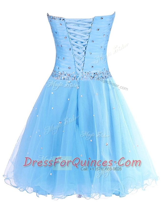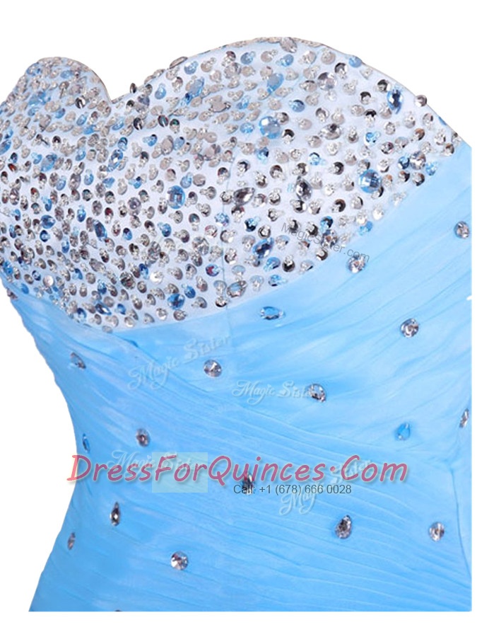 Blue Sweetheart Lace Up Beading Evening Dress Sleeveless