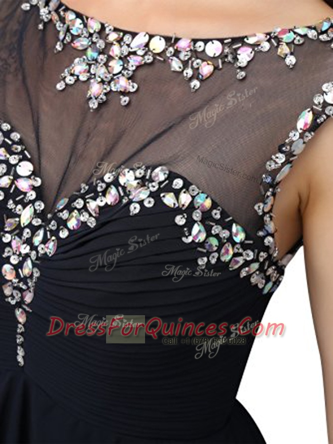 Custom Designed Knee Length Empire Sleeveless Black Dress for Prom Zipper