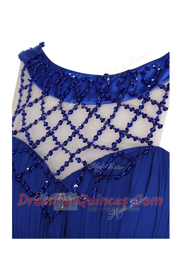 Delicate Watermelon Red Scoop Neckline Beading Prom Evening Gown Sleeveless Zipper