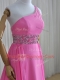 Edgy Rose Pink Column/Sheath Chiffon One Shoulder Sleeveless Beading Lace Up Evening Dress Brush Train
