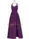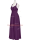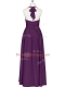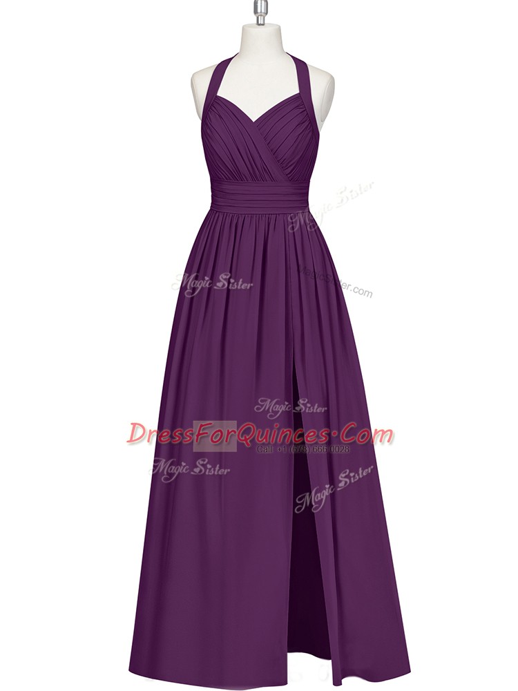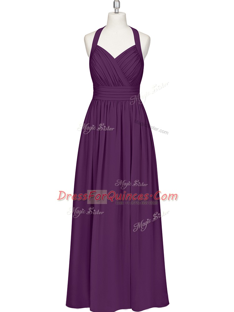 Eggplant Purple Halter Top Zipper Ruching Prom Gown Sleeveless