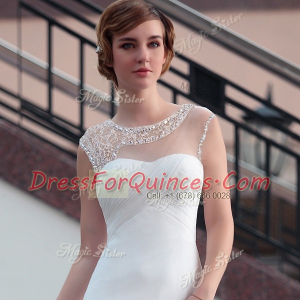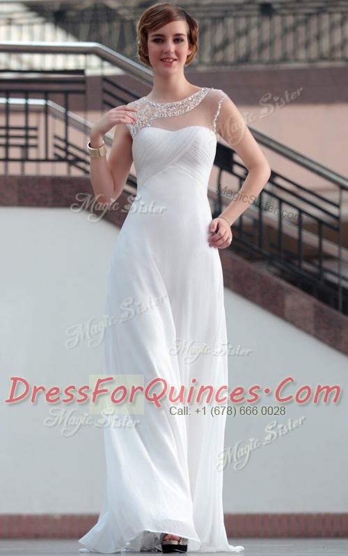 Enchanting White Satin Zipper Sleeveless Floor Length Beading and Lace