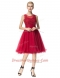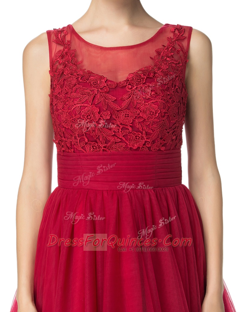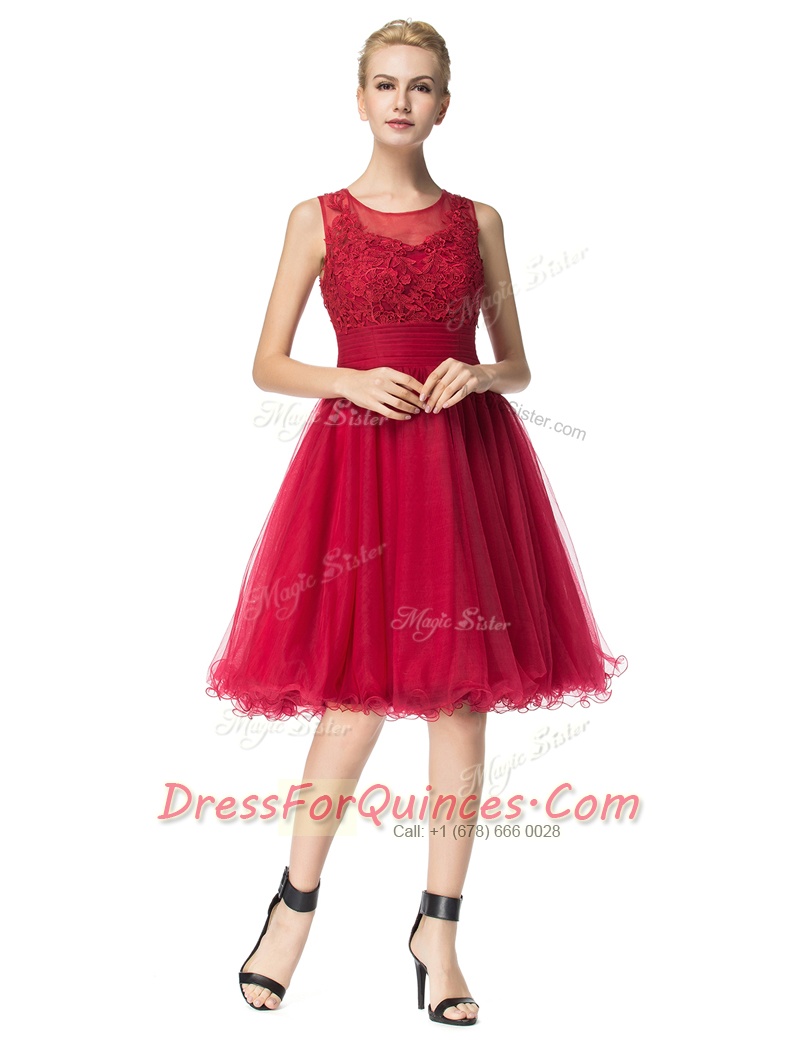 Excellent A-line Red Scoop Organza Sleeveless Knee Length Zipper