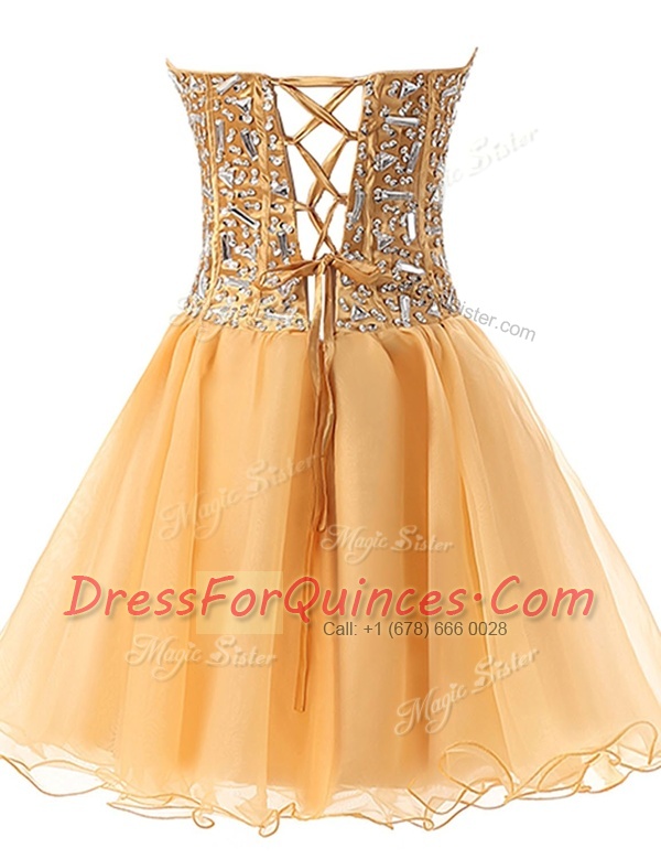 Excellent Rose Pink Lace Up Prom Gown Beading Sleeveless Knee Length