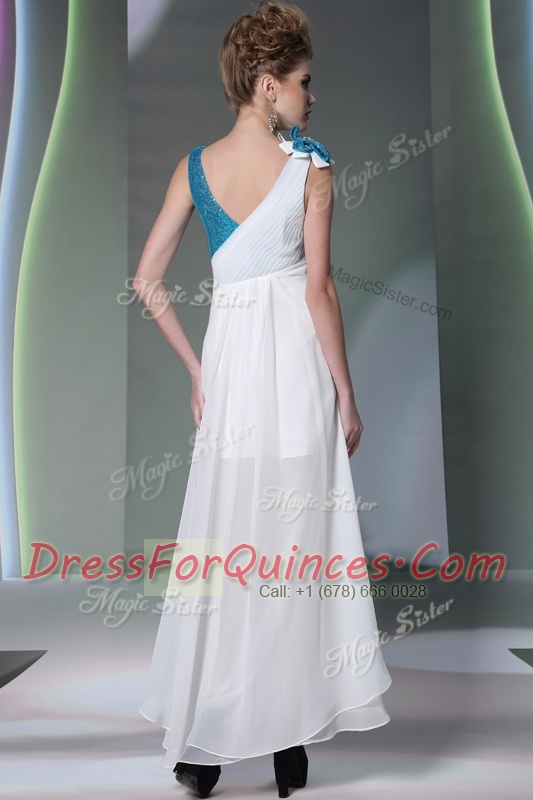 Exquisite Asymmetric Sleeveless Chiffon Ruffled Layers and Sequins and Hand Made Flower Side Zipper