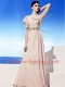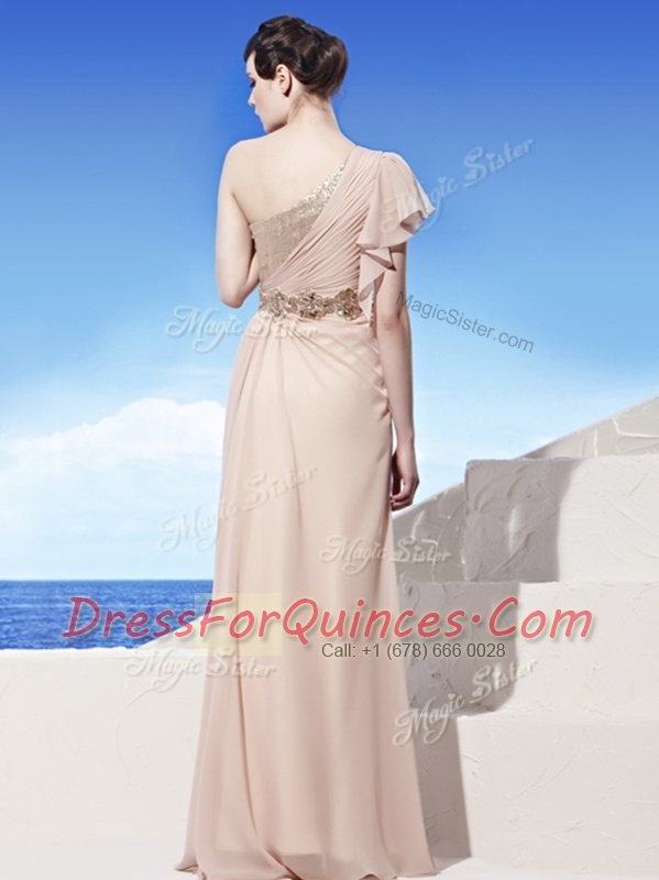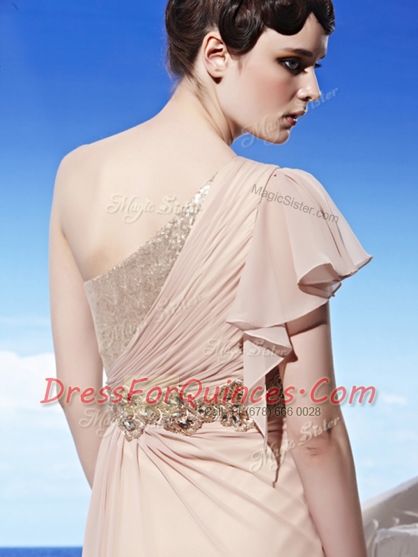 Exquisite Chiffon One Shoulder Sleeveless Side Zipper Sequins and Ruching in Peach
