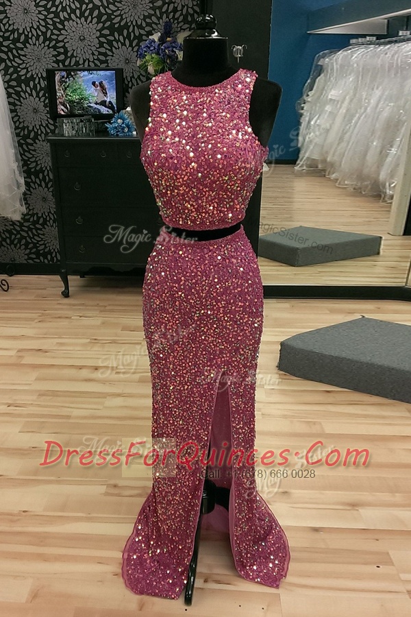 Fantastic Mermaid Lilac Scoop Backless Sequins Sweep Train Sleeveless