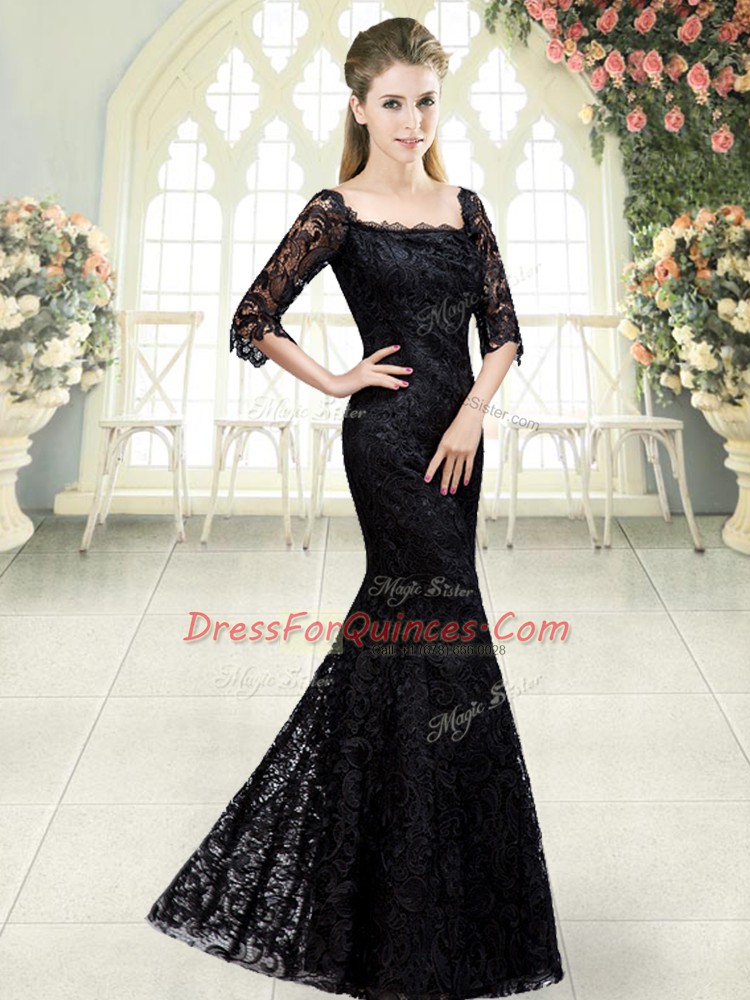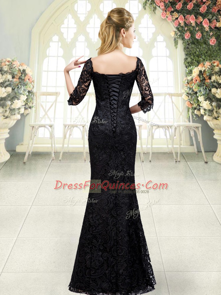 Fashion Black Sweetheart Neckline Beading and Lace Prom Dress Half Sleeves Lace Up