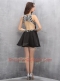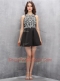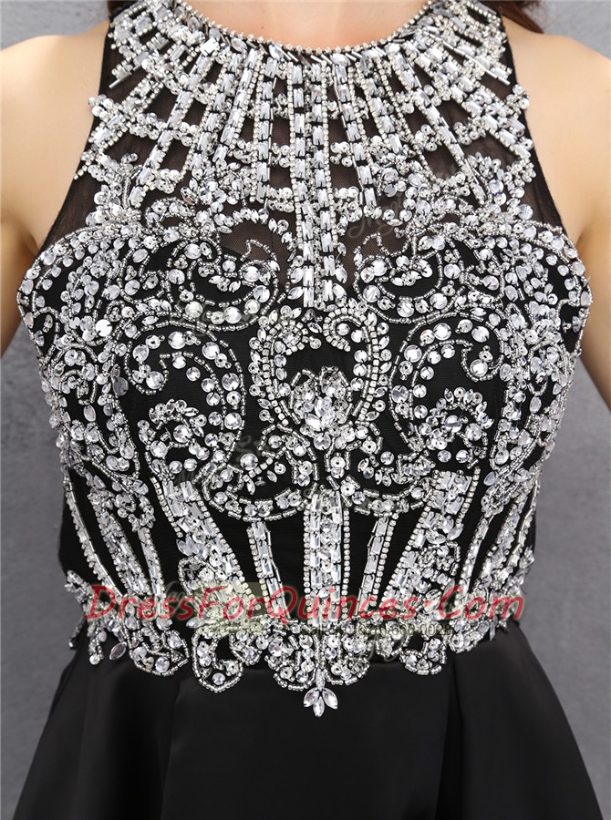 Fashionable Scoop Black Satin Zipper Sleeveless Mini Length Beading
