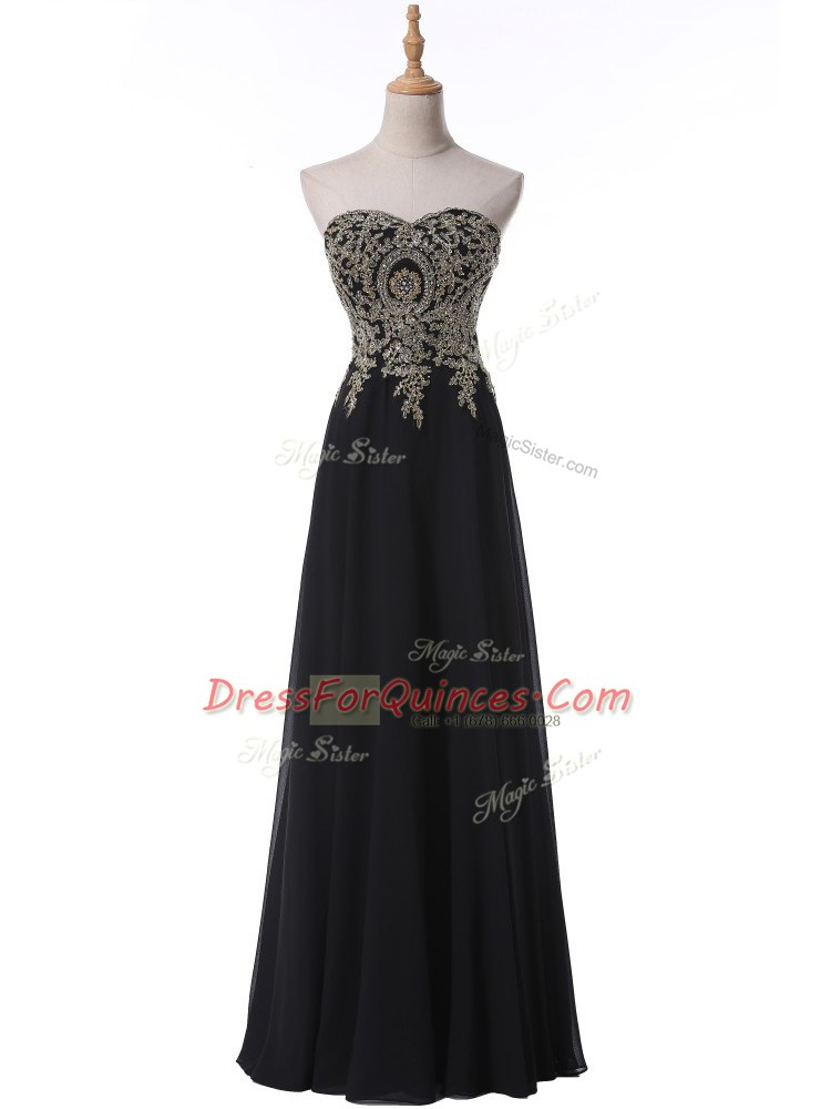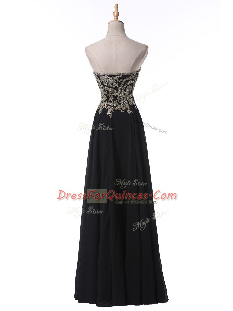 Floor Length Black Prom Evening Gown Sweetheart Sleeveless Side Zipper