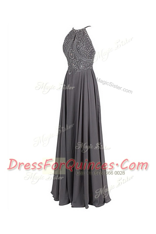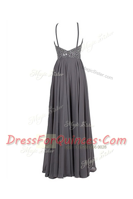Floor Length Grey Homecoming Dress Spaghetti Straps Sleeveless Zipper