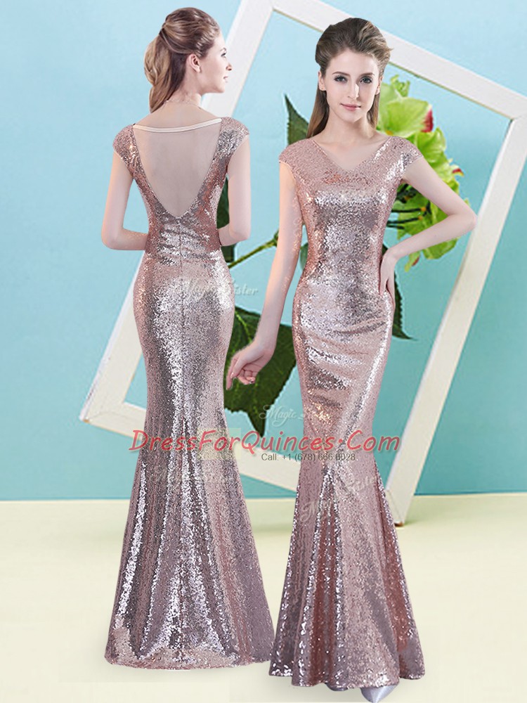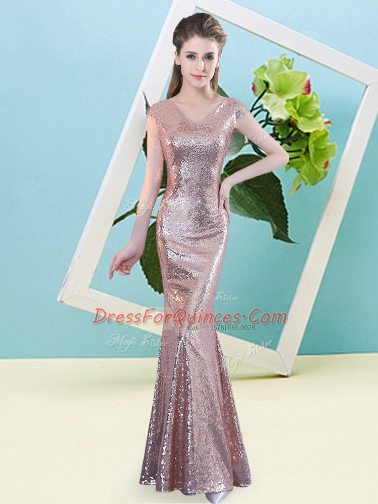 Floor Length Zipper Gold for Prom and Party with Sequins
