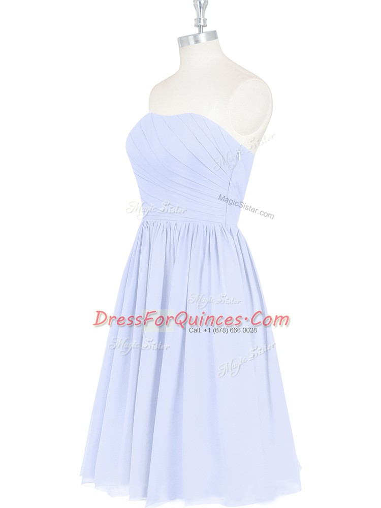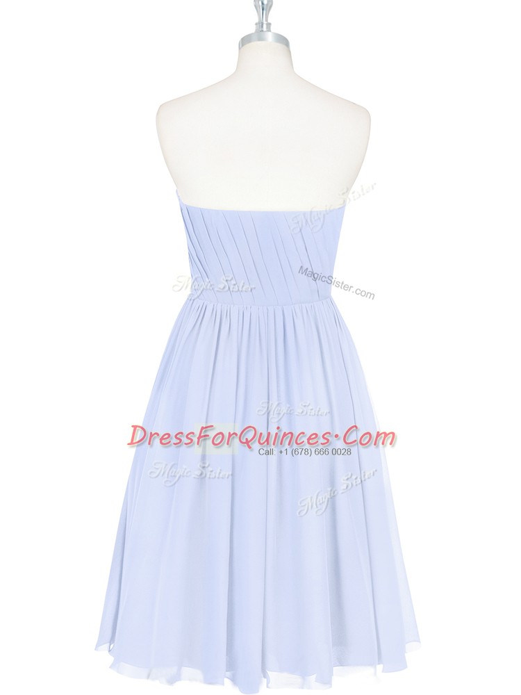 Glorious Ruching and Pleated Light Blue Side Zipper Sleeveless Knee Length