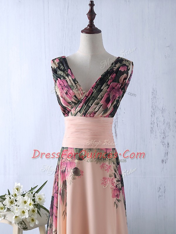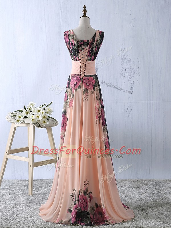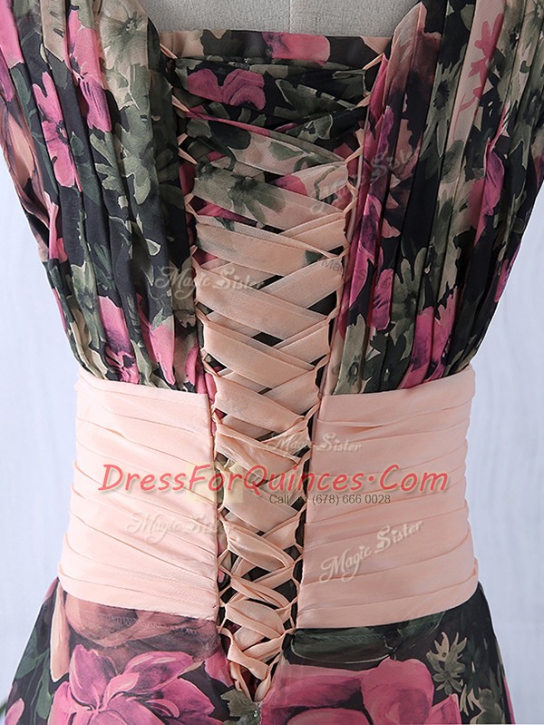 Gorgeous Printed Sleeveless Floor Length Homecoming Dress and Ruching