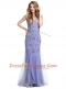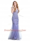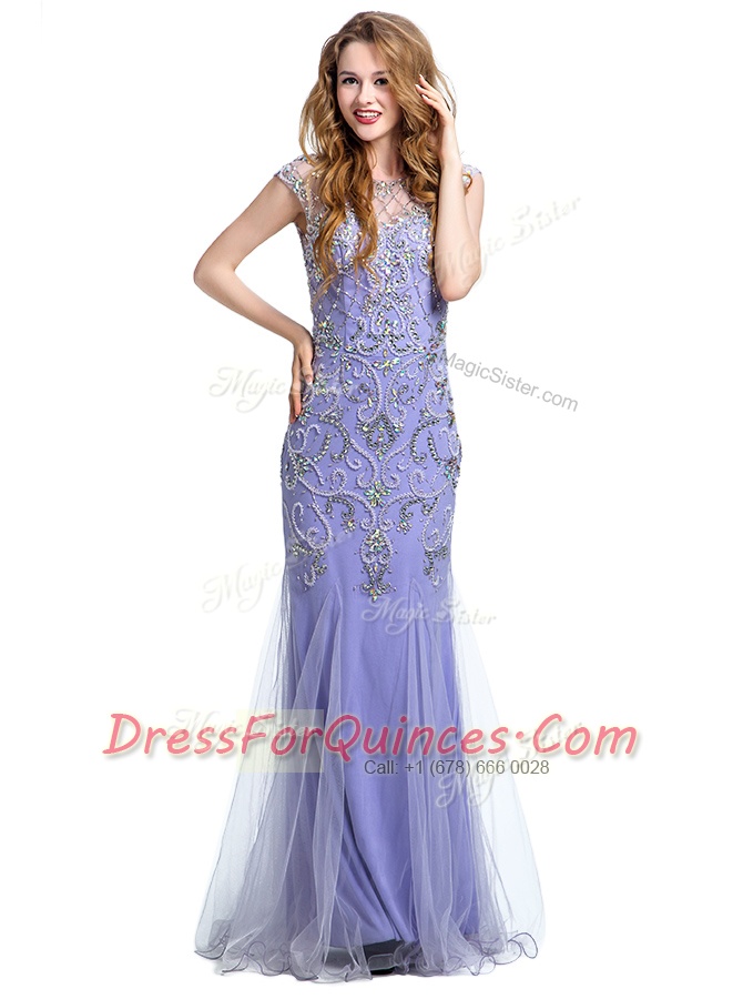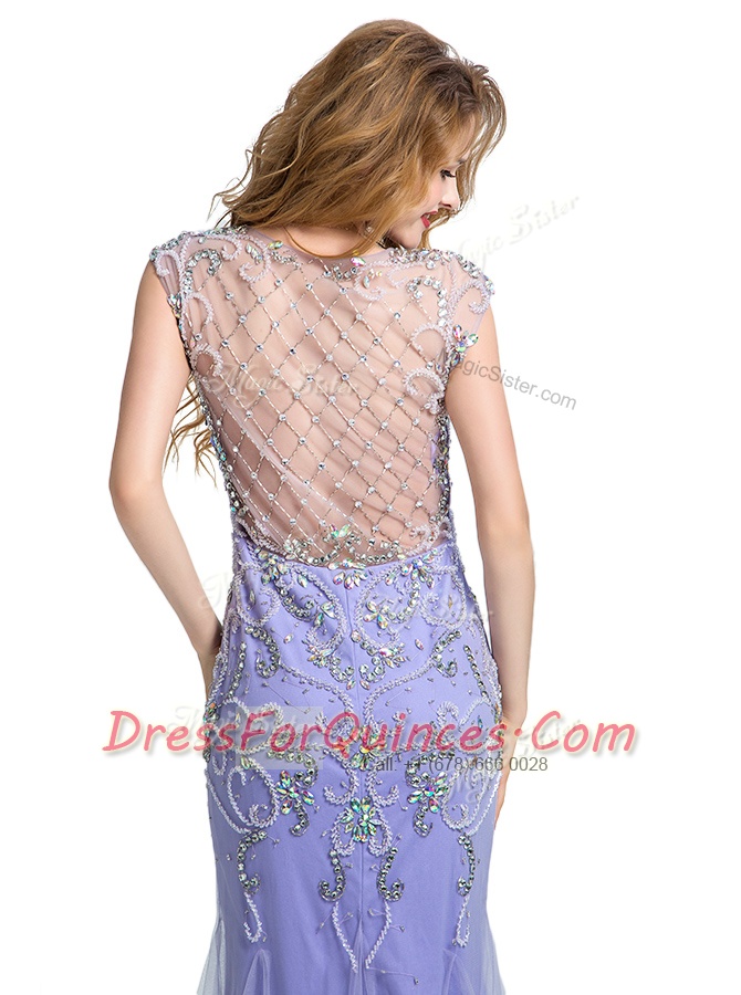 Graceful Mermaid Scoop Beading Prom Dress Lavender Side Zipper Cap Sleeves Floor Length