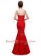 High Class Mermaid Red Sleeveless Lace Lace Up for Prom and Party